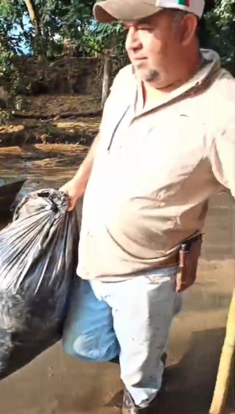 Tuxpan, Veracruz, a 14 de octubre de 2025. — Nuevamente la comunidad de Higueral, una de las más afectadas por las lluvias y el desborde del río Tuxpan, recibió un importante respaldo por parte de Daniel Cortina Martínez, diputado y alcalde electo de Tuxpan, en coordinación con el presidente del Mercado Héroes del 47, Edgar Morales, asi como de Alejandra de la comunidad de Laja de Coloman, Alejandra Hernández y una destacada brigada de alumnos de la Licenciatura en Pedagogía de la UGM Norte Campus Tuxpan. Comandados por la estudiante, Frida Del Angel Gálvez
