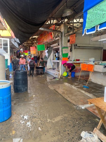 Los negocios que resultaron inundados por el desborde del río Tuxpan están siendo intervenidos con maquinaria, bombeo de agua y desazolve. Además, el personal de servicios públicos municipales trabaja en el boulevard principal para retirar lodo, escombros y agua estancada.